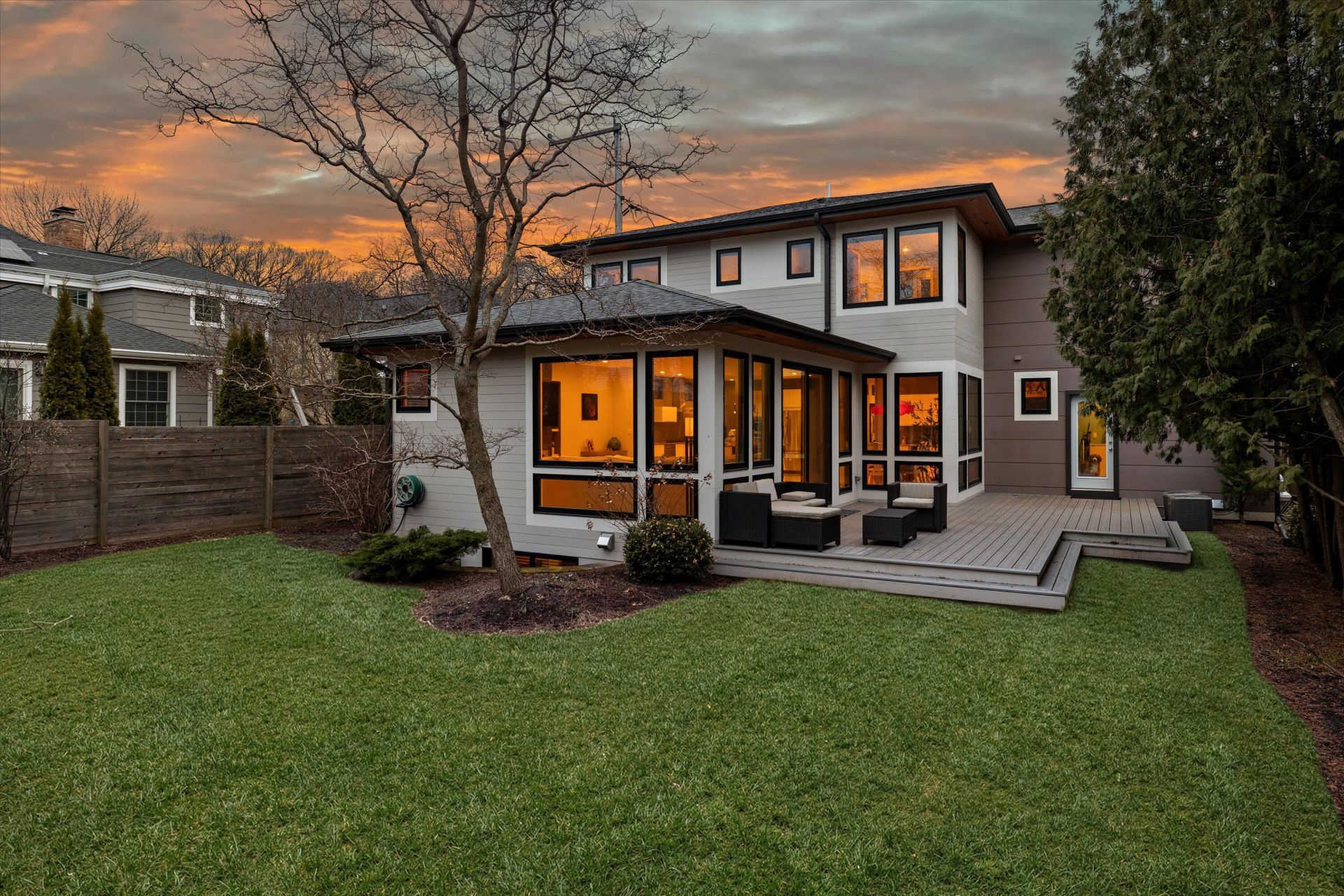 Sleek Expansive Modern 8 Year Old NEW CONSTRUCTION with dramatic entryway floating glass and wood staircase with tall ceilings throughout and sightlines to bright open spacious floor plan. Contemporary kitchen design. large island with prep sink, backsplash, state of the art appliance package. 1st floor den, laundry, mudroom and essential attached garage. Exceptional windows, sliding glass doors to private fenced yard. Upper primary w/sitting area and LARGE walk-in closet and 3 additional bedrooms and 2 baths. Stunning lower level features large family/media room, bar area, and lower ensuite with egress window. 2 storage rooms. Great move-in ready property with high quality mechanicals, attention to detail, and easy walk to the Klode Park and the Village of Whitefish Bay.