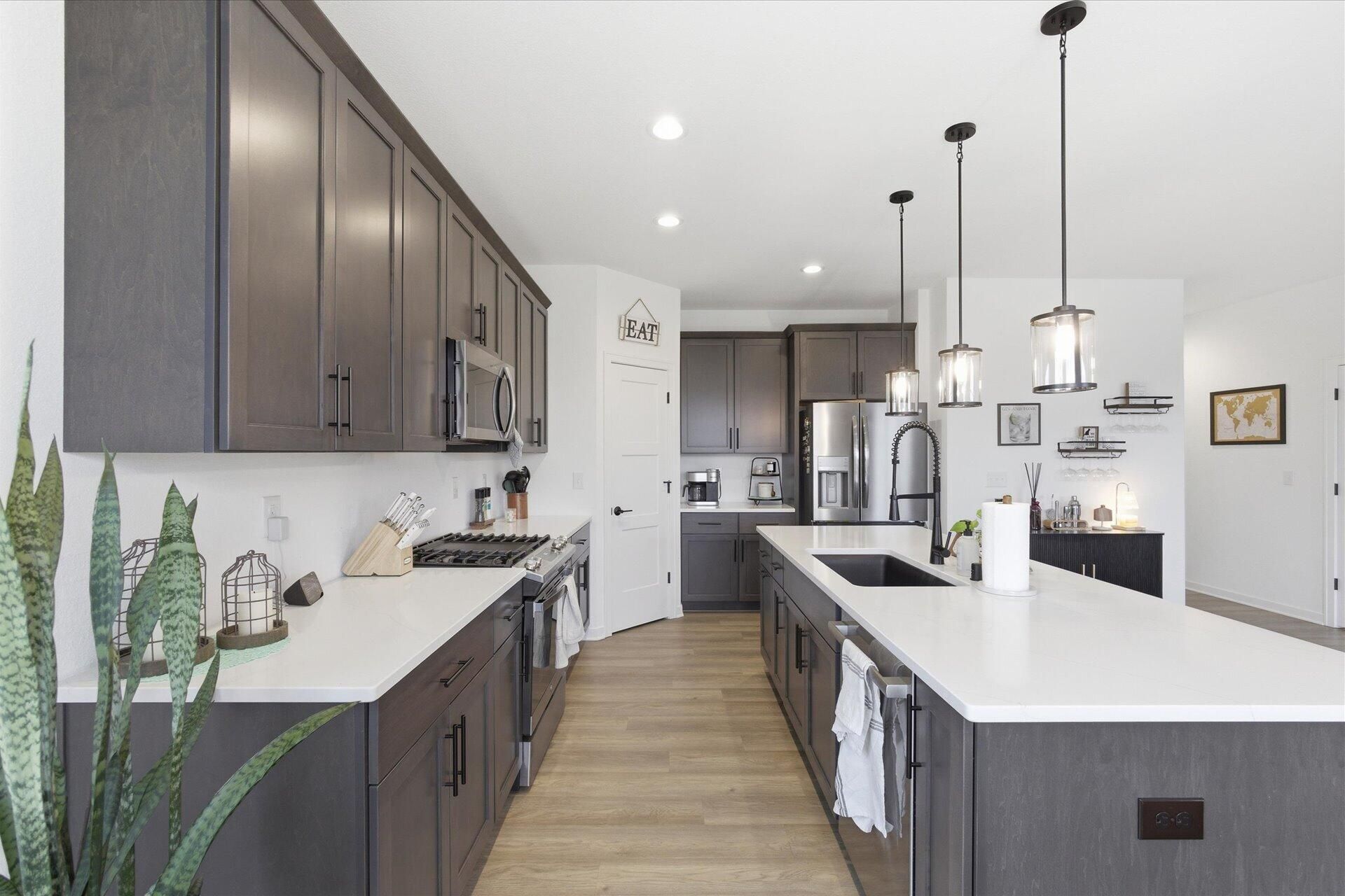 Like-new ranch home built in 2024 offering 3 bedrooms, 2 bathrooms, and over 1,800 sq ft. Bright, open living space with a gas fireplace and a large kitchen island, plus sliding patio doors leading to the spacious backyard. Desirable split bedroom layout with a private primary suite featuring a walk-in closet and ensuite bath. 3-car garage for added storage and convenience. Unlike similar homes in the community still being built at higher prices, this one is move-in ready with driveway, patio, and landscaping already complete. Great opportunity for a lucky home buyer!