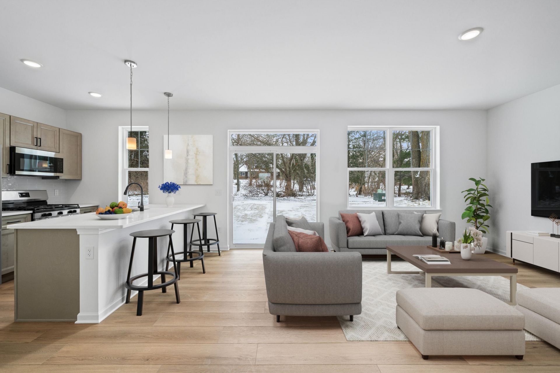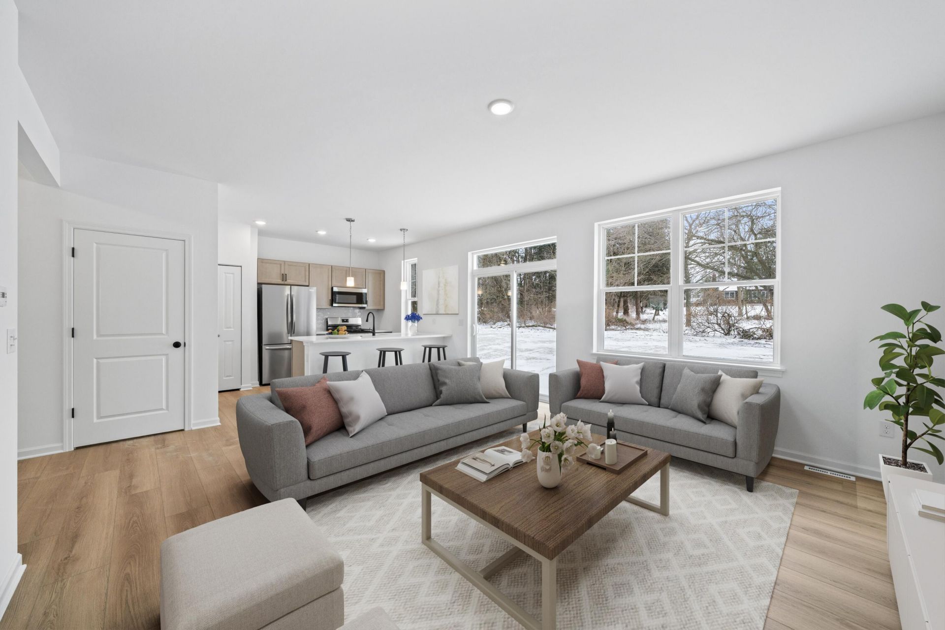 Ready Now! This 2-story brand new home features 3 bedrooms, 2.5 baths, 2 car garage and full basement! The open floor plan features 9' ceiling heights, loads of natural light, and LVP flooring throughout the main level. The kitchen features dovetail cabinetry w/ soft close drawers, tile backsplash, quartz countertops & S/S appliances. The primary bedroom includes a private bath w/ walk in shower, double sinks & a generous closet. Upstairs laundry for convenience. Enjoy peace of mind w/ a 1-yr warranty from an experienced 50+ yr builder. Conveniently located, this home offers easy access to nearby amenities. Meadowview offers zero lot line single-family homes with no monthly condo fees. Photos digitally enhanced.