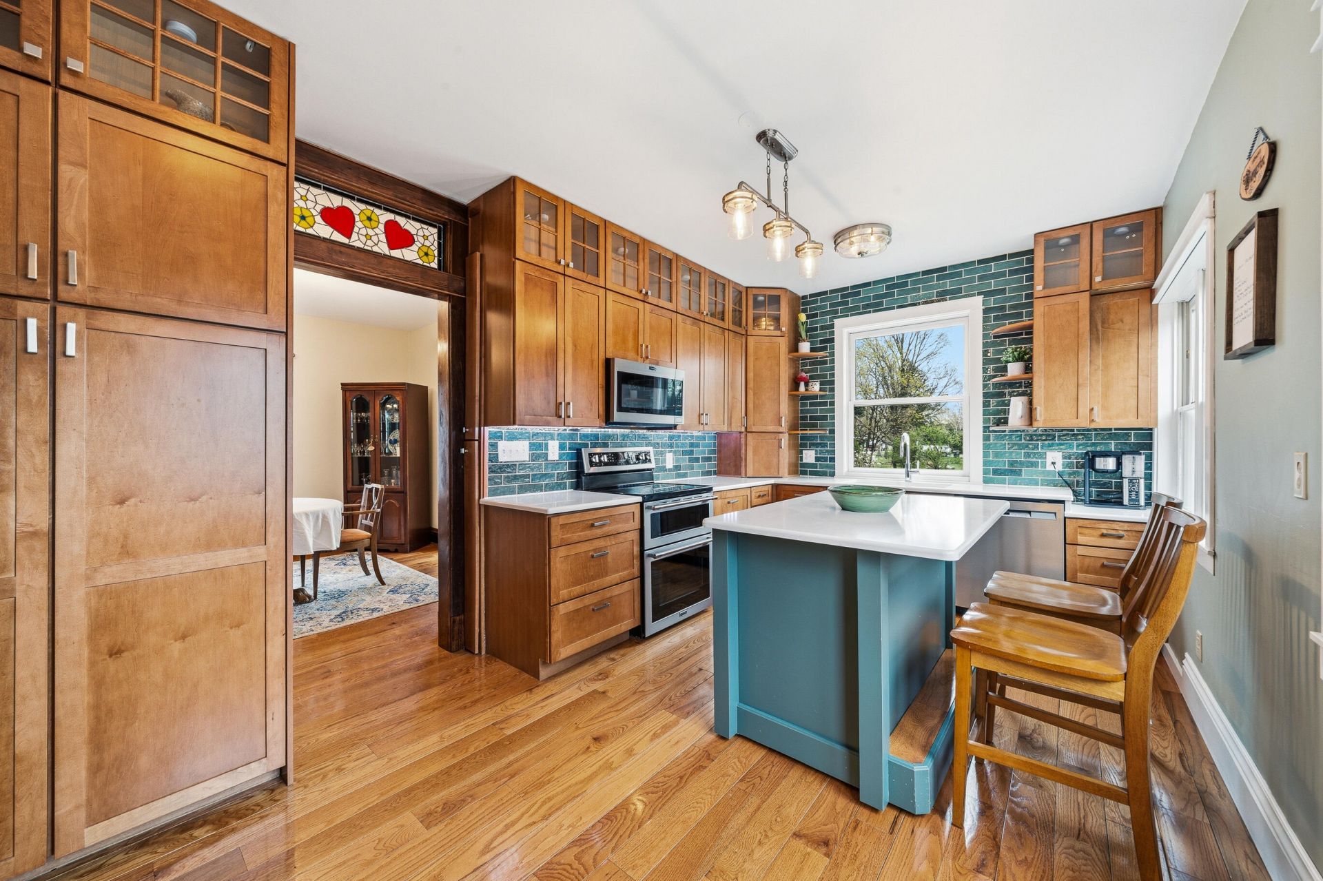 Welcome Home to 206 Wood st right in the heart of Walworth.This charming Craftsman Style home radiates pride of ownership with shake siding, wood floors, built-in bookcases, and a welcoming screened-in front porch. The custom-updated kitchen and baths blend timeless character with modern comfort. A white picket fence surrounds the beautifully flowered front garden, adding to the home's storybook appeal. Enjoy a new Back deck overlooking an extra-deep yard, perfect for gardening or relaxing. With three bedrooms, three baths, and a two-car garage with an upper loft, this home offers warmth, charm, and exceptional functionality.