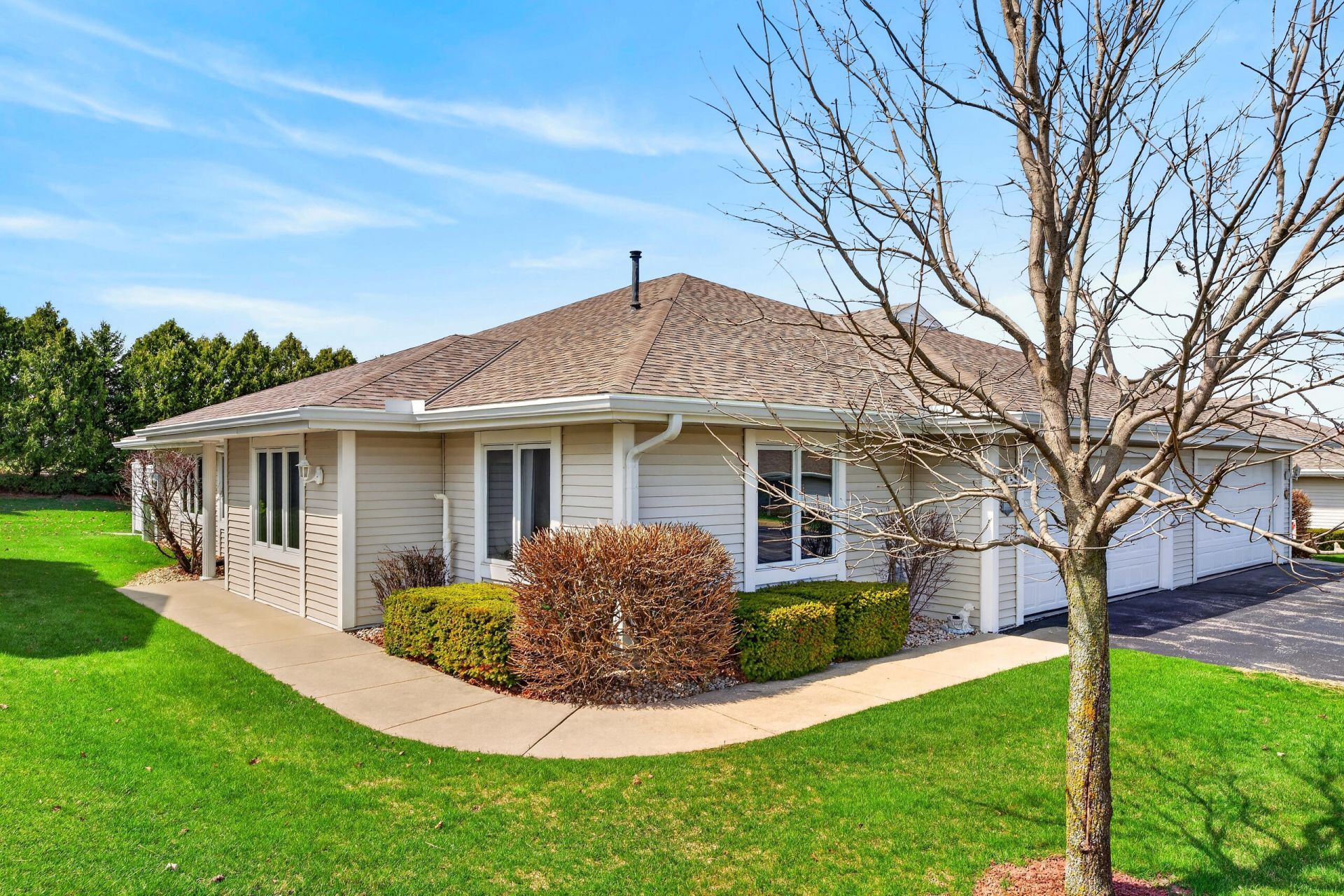 Welcome to this spacious ranch-style condo located in the sought-after Hartford Square 55+ community. This desirable end unit is filled with natural light thanks to its abundant windows. The open-concept floor plan offers three bedrooms and two full bathrooms, including a primary suite with a private bath and a generous walk-in closet. Enjoy relaxing in the large west-facing sunroom, perfect for taking in evening light. Main-floor laundry adds everyday convenience.The expansive unfinished basement provides endless opportunities to customize the space to your needs. Ideally situated near dining, shopping, and medical facilities, this home also includes access to a clubhouse featuring an indoor pool, fitness center, library and community gathering room.
