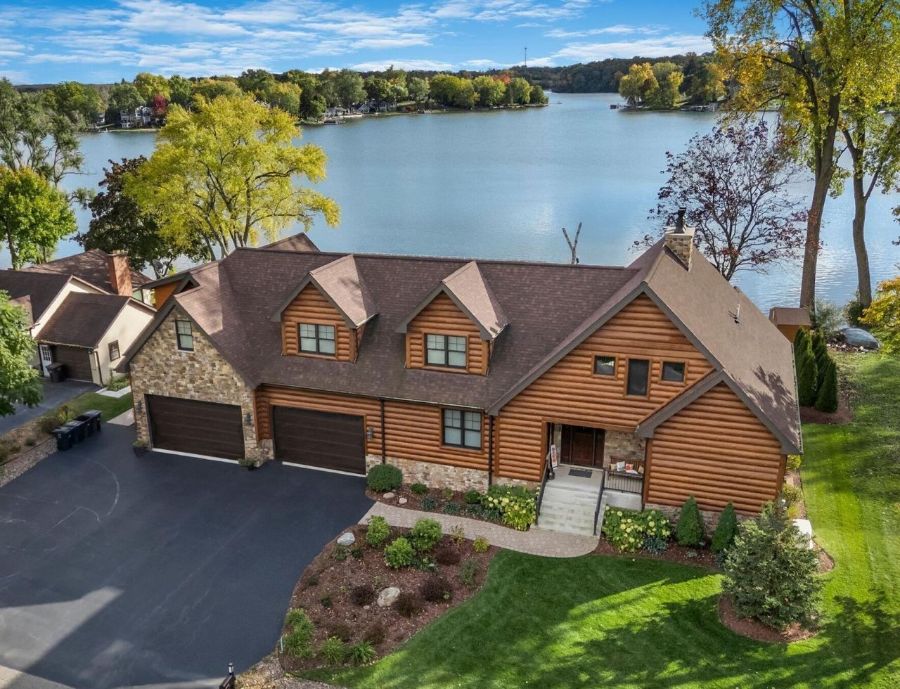 Welcome to Lake Shangrila--an extraordinary furnished waterfront estate in Bristol, WI, just 1 hour from Chicago or Milwaukee. This luxury concrete fiber log lake home offers 120 ft of sandy beach, expansive patios, firepit, and resort-style outdoor living--your private Midwest escape. Inside, an A-frame great room flows into a chef's kitchen with a 12-ft quartz island and high-end appliances. Primary suite features a steam shower and spa feel. Enjoy a fitness room, golf simulator/theatre, heated garage, and indoor/outdoor bar with sliding glass doors. No HOA or deed restrictions--ideal for Airbnb or short-term rental income. A rare Wisconsin lakefront lifestyle + investment opportunity. Set on a 185-acre lake with 6+ miles of shoreline, offering year-round recreation and escape.