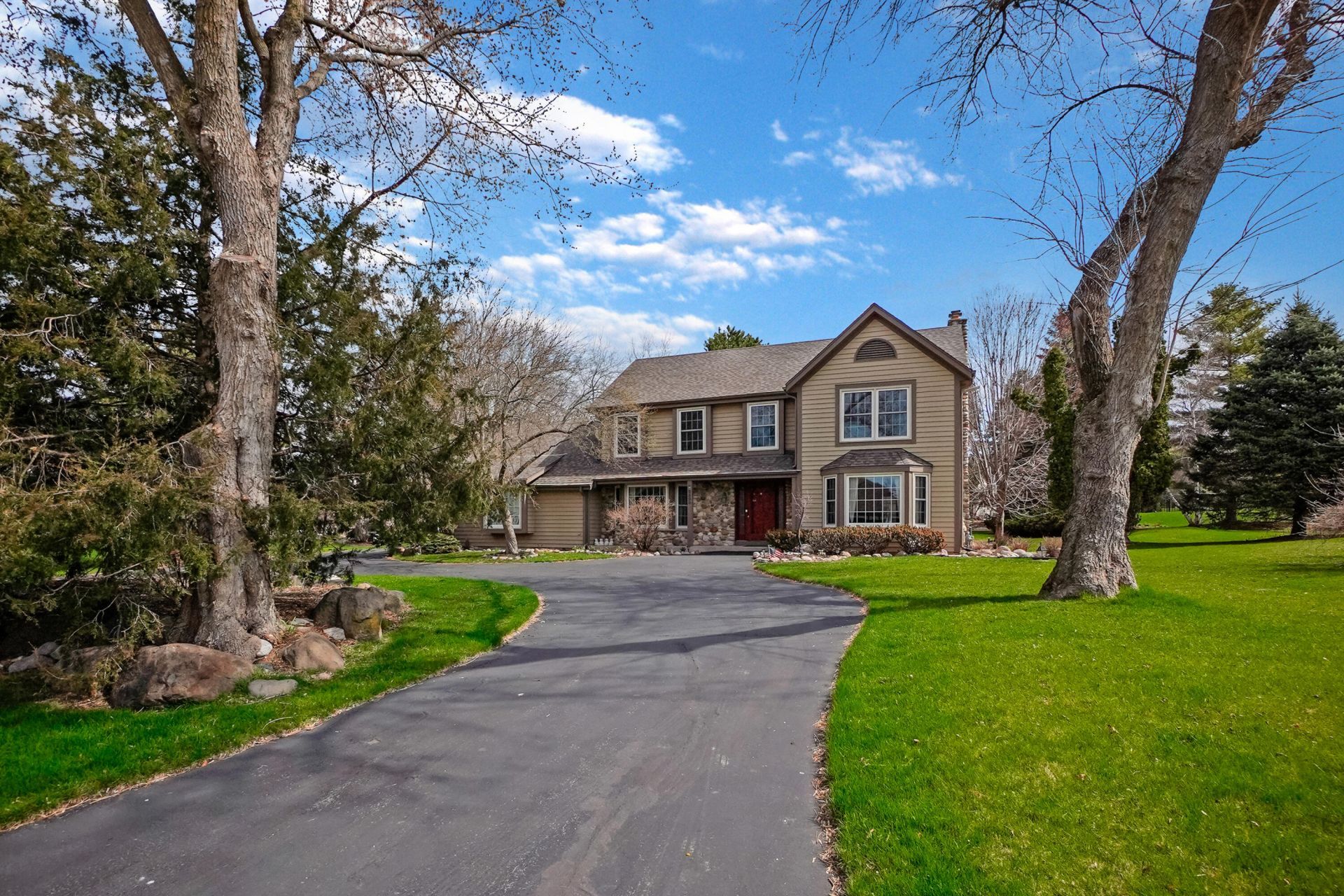 Well-maintained colonial home in Brookfield's Chateau Royale! Circle drive brings you to a professionally landscaped lot featuring a beautiful large back yard. Interior offers marble tile foyer flanked by living and dining rooms. French doors to family room with stone natural fireplace. Hardwood floors through kitchen , family, and living rooms. Kitchen has quartz counters, island, SS appliances, planning desk, and butler's pantry. Main floor laundry with washer-dryer included. Upper level features a large loft area and 4 bedrooms. Primary bedroom has a walk-in closet and private bath with dual sink vanity and upgraded shower. Finished lower level adds additional living space with rec room, den, and full bath. Relax on the huge 40x30 back yard deck. Elmbrook schools. Convenient location!