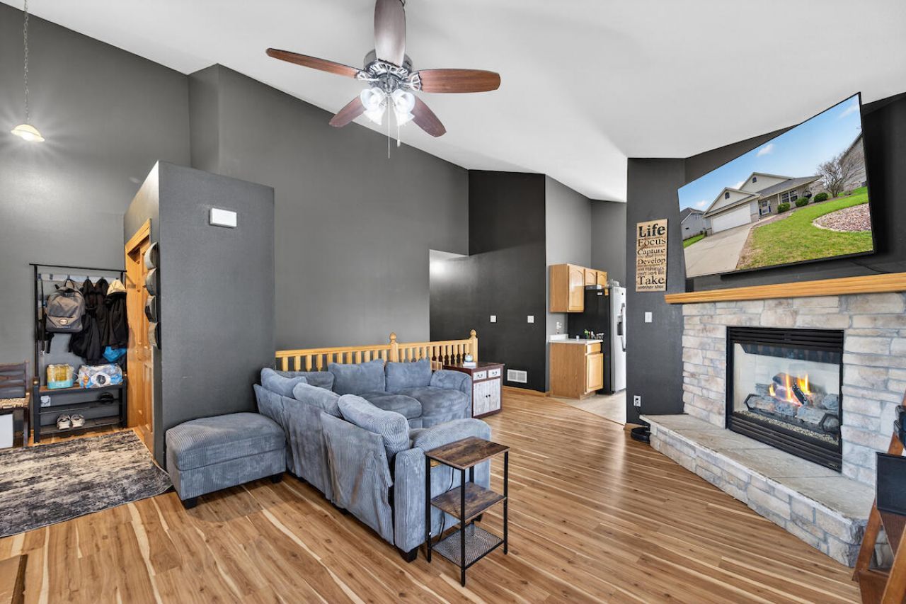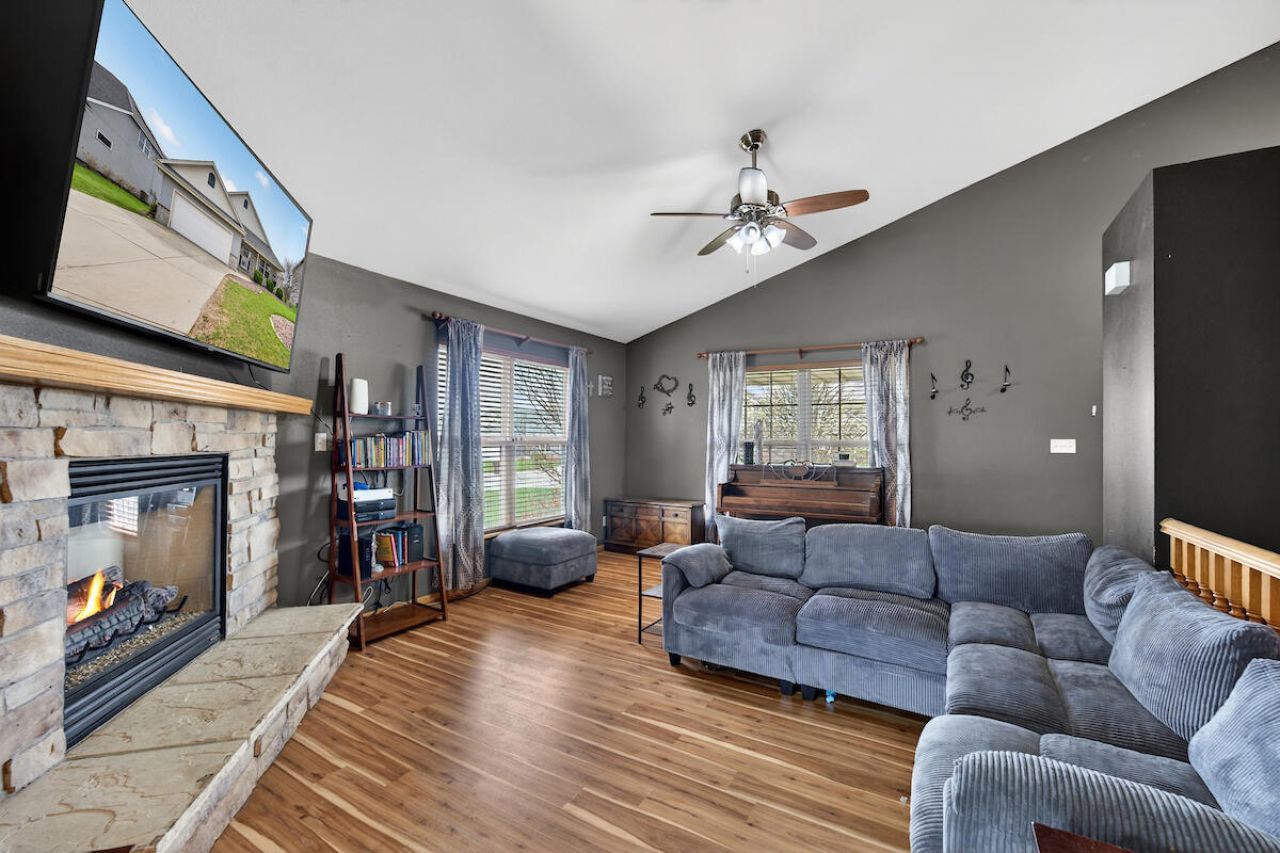 Beautiful 3 bedroom, 2 bath Caledonia ranch. This inviting home features a covered front porch & low-maintenance exterior for easy living. Inside, the living room boasts vaulted ceilings, cozy gas fireplace, & an open baluster staircase to the lower level. The kitchen offers a pantry, abundant cabinetry & counter space, dining area, & sliding doors leading to the patio - perfect for entertaining. Enjoy 6-panel doors throughout, a spacious primary suite with walk-in closet & private full bath, plus two additional generously sized bedrooms & a full bath with tub. The lower level includes a family room & two bonus rooms ideal for a home office or craft space. Community greenspace offers parks, ponds, & walking paths. Conveniently located for commuting. Gifford school K-8 nearby.