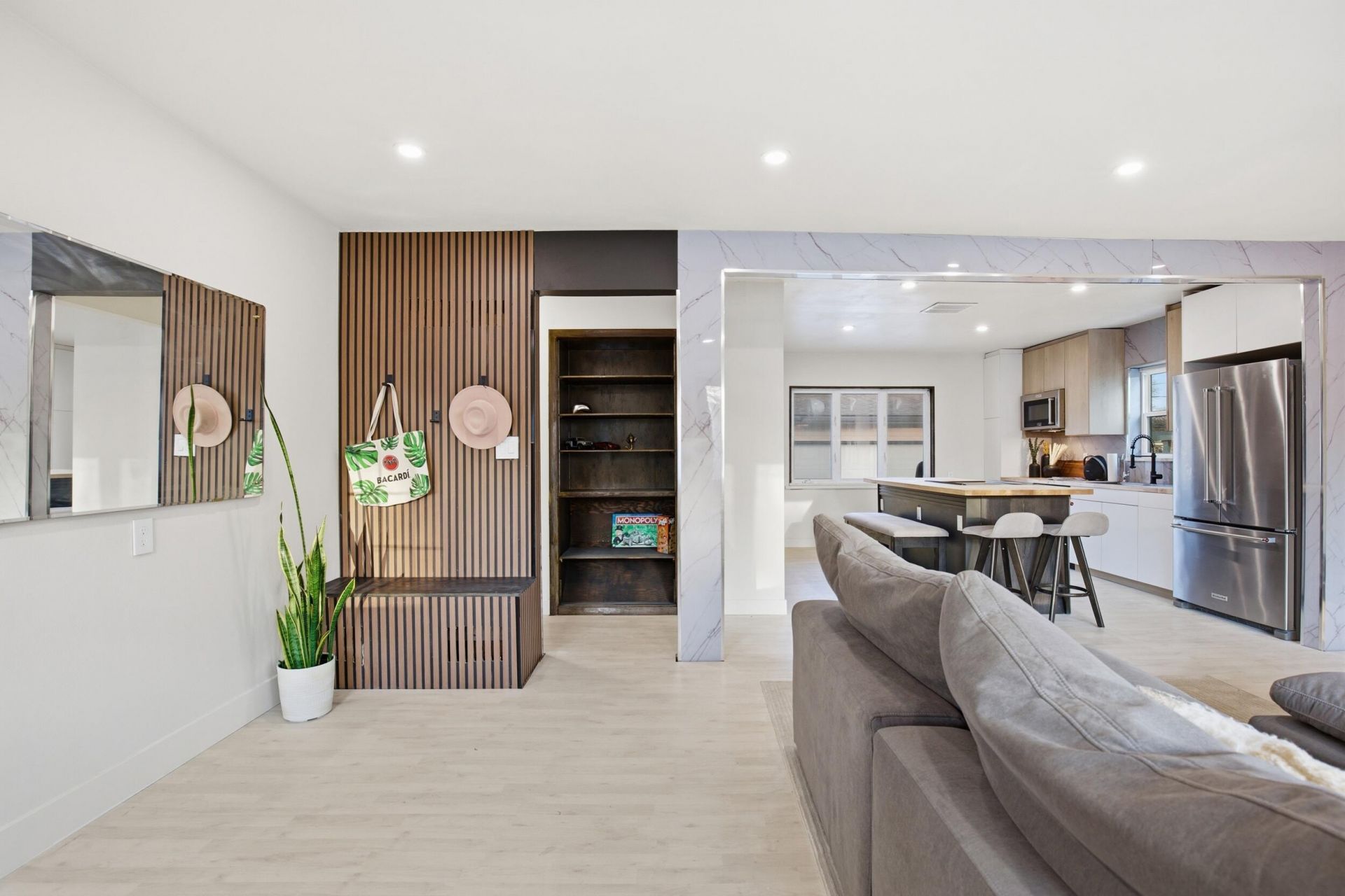 Location, location, location! Set on a uniquely positioned lot with its own private cul-de-sac feel, this fully renovated designer home offers rare privacy just steps from Whitefish Bay and minutes to Bayshore Mall, restaurants, groceries, and daily essentials. Enjoy peaceful living with quick highway access for an easy commute and a short drive to Lake Michigan. Inside, a bright open layout features a hibachi-style kitchen with KitchenAid appliances, Klearvue cabinetry, butcher block counters, and touchless faucet. Smart upgrades include motorized blinds, LED fireplace media wall, and dual lighting. Spa-like bath with body jet shower and finished lower level with bar add flexible living. Competitively priced to attract strong interest and quick action!!! HOME WARRANTY INCLUDED!!!
