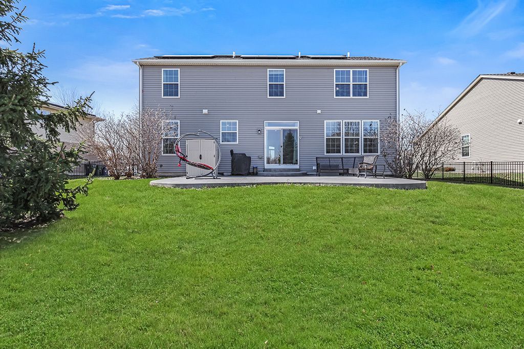 Nestled in the sought after Indian Ridge of Minooka, this home offers HGTV designer finishes and hues. A striking brick exterior is accented by dark window shutters and a cozy front porch to unwind. Inviting two story foyer offers a beautiful wrought iron staircase. Formal living room, featuring a board and batten accent wall and flows seamlessly into the spacious dining room, which is great for entertaining. Incredible gourmet kitchen is truly the heart of the home with custom cabinetry, quartz countertops, stainless steel appliances, a center island for food preparation, elegant pendant lighting and a pantry closet. Extended eating area in the kitchen for added seating. Comfortable family room with views of the serene backyard and main level office with stunning barn doors. The main level also includes a mudroom area and a powder room. Relaxing master retreat boasts a large walk-in closet and a private ensuite with a dual vanity and separate shower. Three additional bedrooms on the second level with great closet space and all three share a full bathroom. Second level laundry for everyday convenience. Full, lower level offers plenty of opportunity to finish your dream space with drywall and electric already completed and provides room for recreation, a 5th bedroom, storage and more! Incredible backyard that is fenced for privacy, extended patio area allow for tons of room to entertain and unwind and a firepit. Great location and majority of everything is 6 years young! Washer/Dryer, Shed & Solar Panels (2023), Patio (2021)