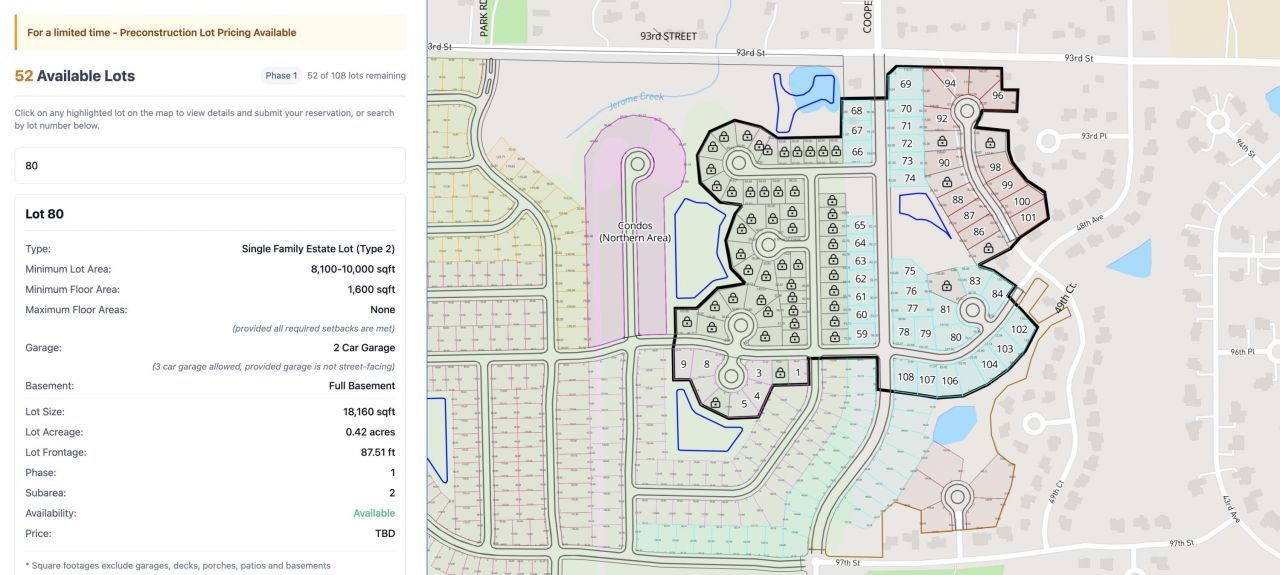 Welcome to Highland Estate Development, Pleasant Prairie's most exciting new residentialcommunity! Lot 80 is a generously sized corner homesite offering over 18,160 square feetwith spacious views--perfect for bringing your dream home to life. Phase 1 is officiallyunderway, giving you the opportunity to bring your own builder or work with one of ourtrusted partners. Designed with lifestyle and livability in mind, Highland Estates offers theperfect blend of community, comfort, and convenience in a prime location. Don't miss yourchance to call this exceptional neighborhood home!
