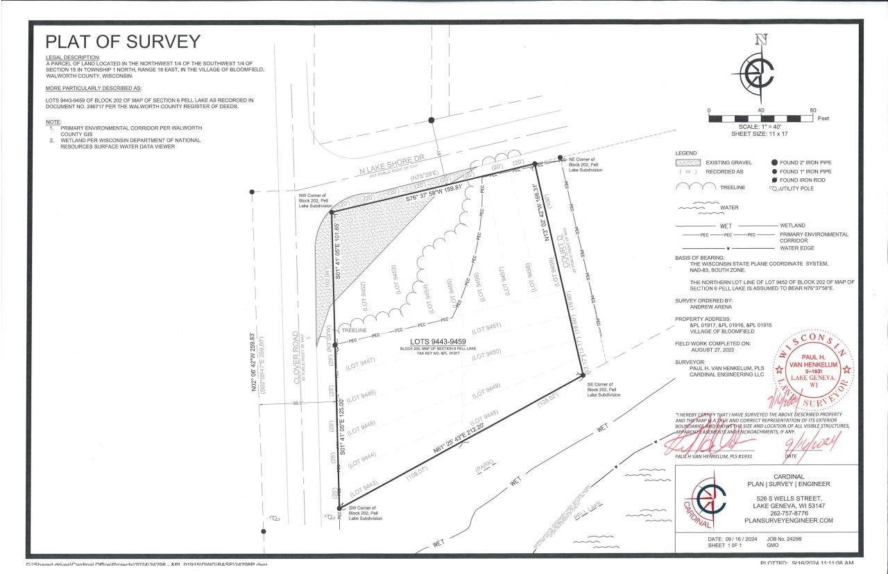 Vacant Lot on Pell Lake. Situated on .81 acres, with beautiful lake views. This lot was just rezoned Residential, so you can build your dream home. 15 mins from Lake Geneva. New Survey on file from 2024. Fishing paradise.