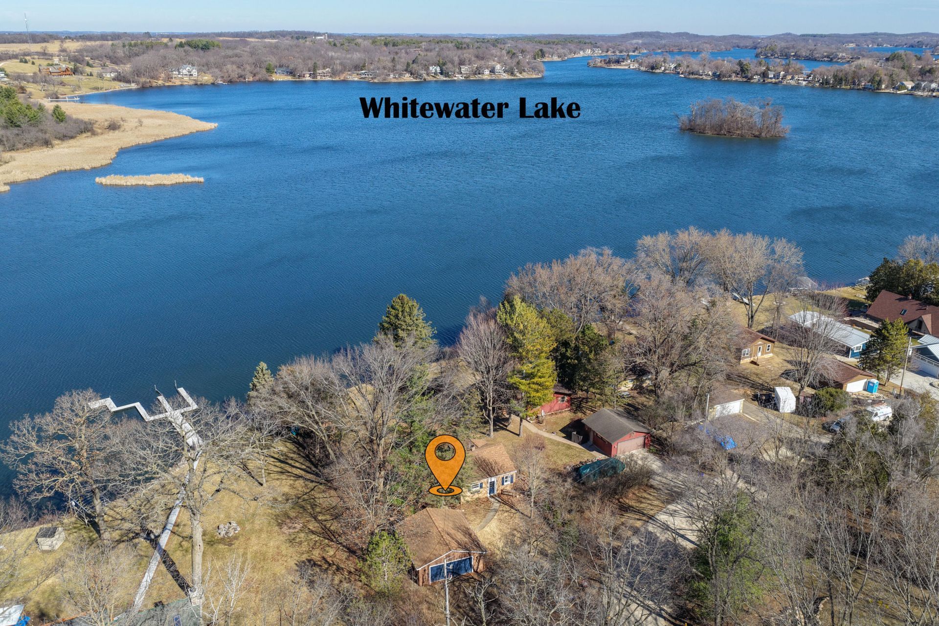 Tucked away in a quiet section of the lake, this adorable move in ready lake house is the ultimate getaway. With tall pines framing your lake views and abundant wildlife all around. Enjoy calm waters ideal for paddleboarding, kayaking, swimming, and boating right off your shore. The charming interior offers warmth and comfort, while the outdoor spaces invite you to relax, entertain, and soak in the sunset. Located in the heart of the Kettle Moraine next to Natureland Park. Whitewater Lake is a 705 acre all sports lake. Experience all that area has to offer with nearby hiking, biking, horseback riding, skiing, and snowmobile trails. This home is only 10 minutes to town for restaurants, shopping, and the University. A convenient 2 hour drive from Chicago or 45 Minutes from Madison and MKE