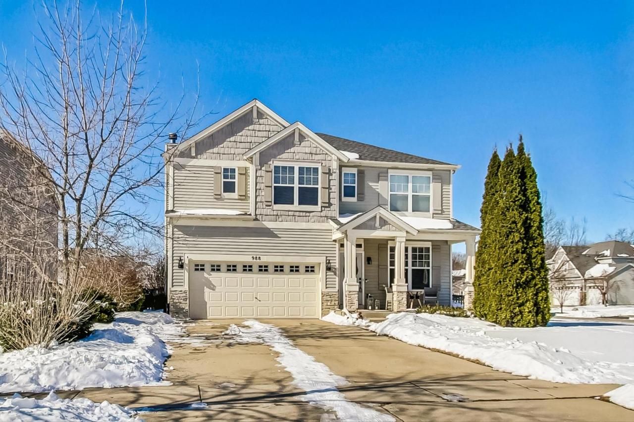Welcome home to this move-in ready gem featuring recent updates throughout that include: New flooring on the first level, a New roof, updated bathroom countertops, a New refrigerator, New quartz countertops, and a newly installed fence. Home is close to a park with a basketball court, tennis courts, playground, and baseball field. Inside, the eat-in kitchen boasts stainless steel appliances and ample space for a dining table, while the inviting living room is highlighted by a charming brick gas log fireplace. The second floor has a versatile loft, four bedrooms complete with ceiling fans, and a conveniently located 2nd floor laundry room. The primary bedroom serves as a private retreat with vaulted ceiling, a walk-in closet, and an en-suite bathroom featuring a double vanity, soaker tub, and separate shower. Full basement and Attached Garage. Outside has a front porch and a fenced yard with a large brick paver patio that is perfect for relaxing or entertaining. Multiple Offers, Highest and Best Offer Deadline is 11am Thursday the 27th
