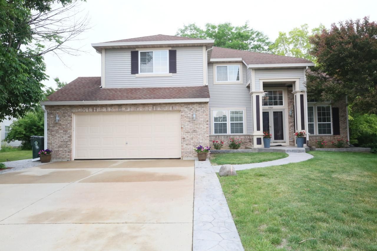 Welcome to this stunning, contemporary 5-bedroom, 2.5-bathroom home offering space, style, and modern comfort! Step into the impressive two-story vaulted ceiling living area filled with natural light and beautiful hardwood floors throughout. The open-concept kitchen features granite countertops, an island, and stainless steel appliances, seamlessly connecting to the spacious living room-perfect for entertaining.The main level also includes a dedicated office with built-in bookshelves. Upstairs, enjoy spacious bedrooms and a serene primary suite. The fully finished basement offers a media room, an additional bedroom, and ample storage.Outside, relax on the brick-paved patio surrounded by professionally landscaped grounds. A large shed offers extra space for tools or even a riding mower. Additional updates include newer HVAC and water heater. All this just one block from a local park-this is a home you won't want to miss!